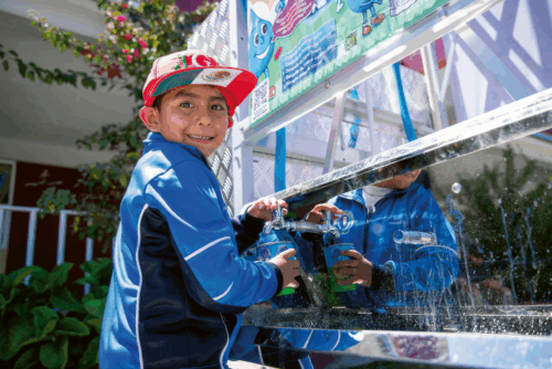 Ein Schüler einer Grundschule in Jilotepec versorgt sich mit aufbereitetem Trinkwasser.