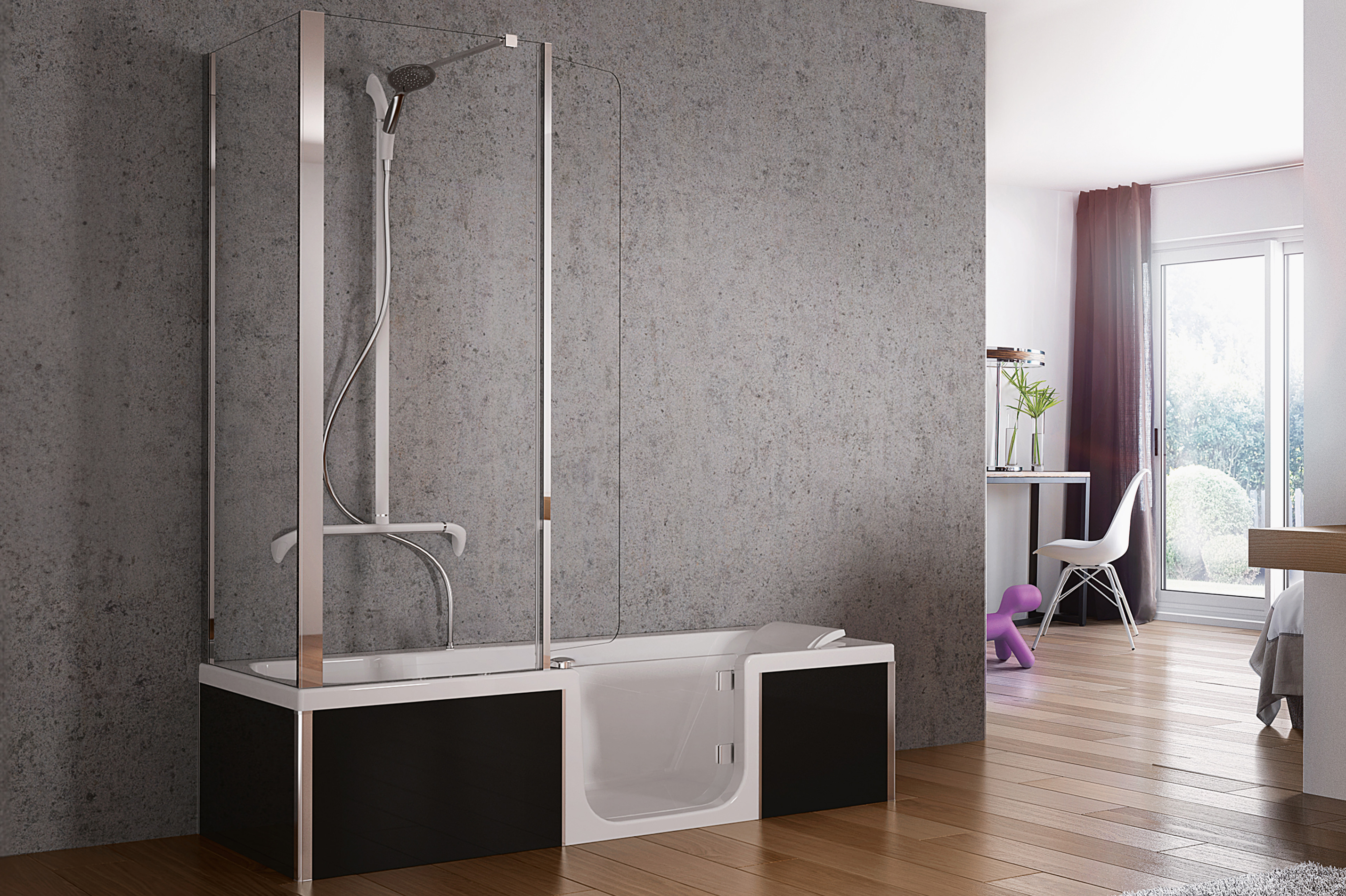 Es sind keine Vorarbeiten an Mauerwerk und Boden erforderlich. Fliesen- oder Steinböden müssen nicht entfernt werden, der Boden muss nicht aufgestemmt oder nachbearbeitet werden, kein Silikon erforderlich.